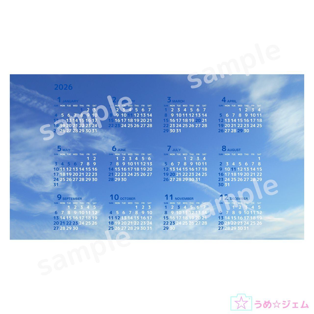 PC壁紙 カレンダー《2026年1月~12月 vol.2》 3840×2160(JPGファイル)