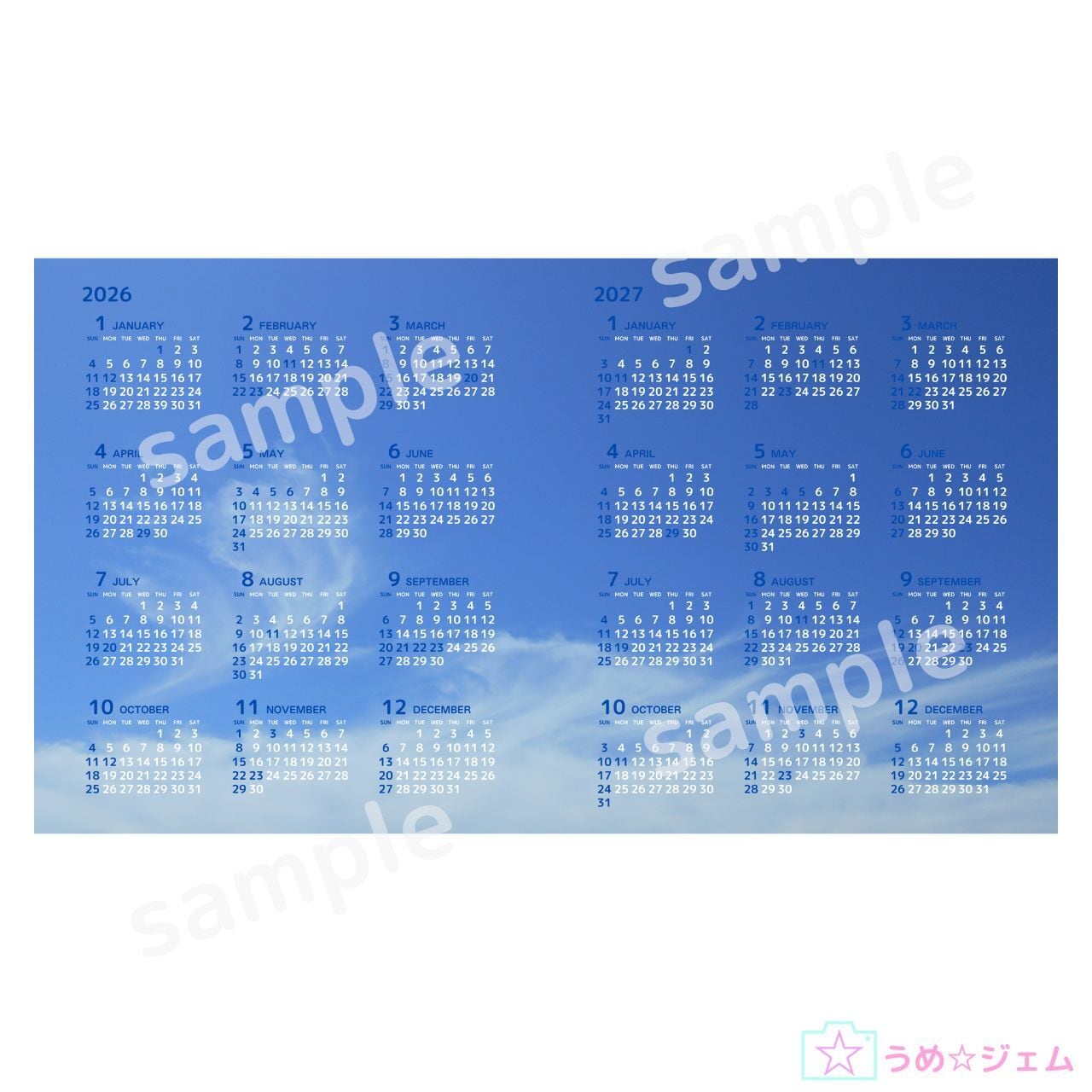 PC壁紙 カレンダー《2026年1月~2027年12月 vol.2》 3840×2160(JPGファイル)