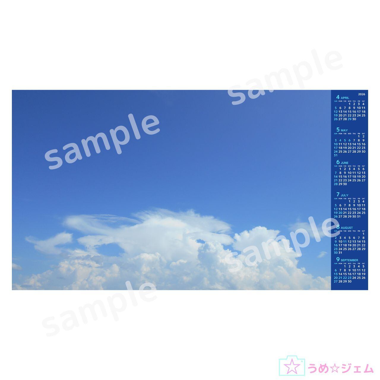 PC壁紙 カレンダー《2026年4月~9月 vol.3》 3840×2160(PNGファイル)